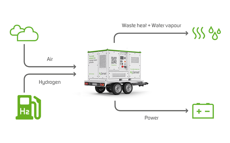 Waterstofbrandstofcellen vormen een klimaatneutraal, stil en zeer efficiënt alternatief om te voldoen aan de toegenomen elektriciteitsvraag en een (nood)stroomvoorziening te garanderen zonder dieseloplossingen. De H₂Genset is niet alleen inzetbaar als betrouwbare noodstroomgenerator, maar kan ook de stroomvoorziening veiligstellen in gebieden zonder toegang tot het conventionele elektriciteitsnet. De H₂-generator is een geavanceerd, klimaatneutraal en uiterst flexibel energievoorzieningssysteem.